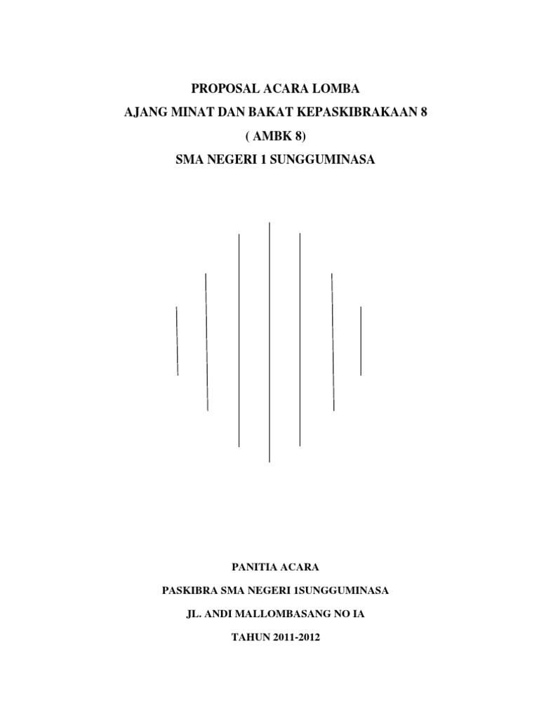 Jika Anda masih membutuhkan referensi jurnal lainnya yang berhubungan dengan contoh proposal lomba paskibra silahkan request langsung. Seni adalah imajinasi estetika yang telah bersemayam sejak Tuhan menciptakan. KATA PENGANTAR Dengan memanjatkan puji syukur kepada Tuhan yang maha esa karena atas rahmat dan karunia-Nya kita selalu dalam keadaan sehat walafiat.